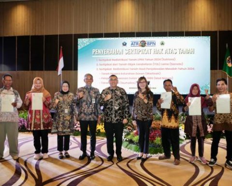Balikpapan – Menteri Agraria dan Tata Ruang/Kepala Badan Pertanahan Nasional (ATR/BPN), Nusron Wahid menyerahkan 44 sertipikat hasil program Pendaftaran Tanah Sistematis Lengkap (PTSL) kepada warga Kota Balikpapan, Provinsi Kalimantan Timur. Sertipikat ia serahkan langsung secara secara _door to door_ di Kelurahan Manggar,
