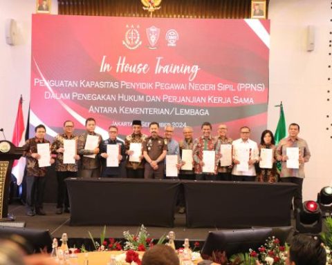 Jakarta – Kementerian Agraria dan Tata Ruang/Badan Pertanahan Nasional (ATR/BPN) bersama 12 kementerian/lembaga (K/L) lainnya melangsungkan penandatanganan Perjanjian Kerja Sama dengan Kejaksaan Agung Republik Indonesia, Selasa (03/09/2024). Kerja sama ini tentang Penguatan dan Sinergitas Penyidik Pegawai Negeri Sipil (PPNS) pada K/L terkait.