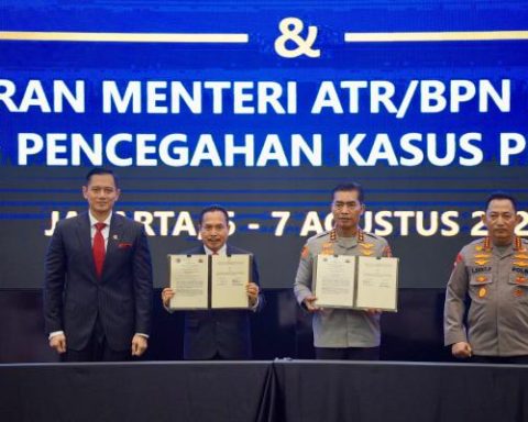 Jakarta – Kementerian Agraria dan Tata Ruang/Badan Pertanahan Nasional (ATR/BPN) dan Kepolisian Republik Indonesia (Polri) sepakat untuk bekerja sama mencegah terjadinya konflik pertanahan. Menteri ATR/Kepala BPN, Agus Harimurti Yudhoyono (AHY) menyebut kerja sama yang mengutamakan pencegahan konflik ini dilakukan guna menuntaskan kejahatan