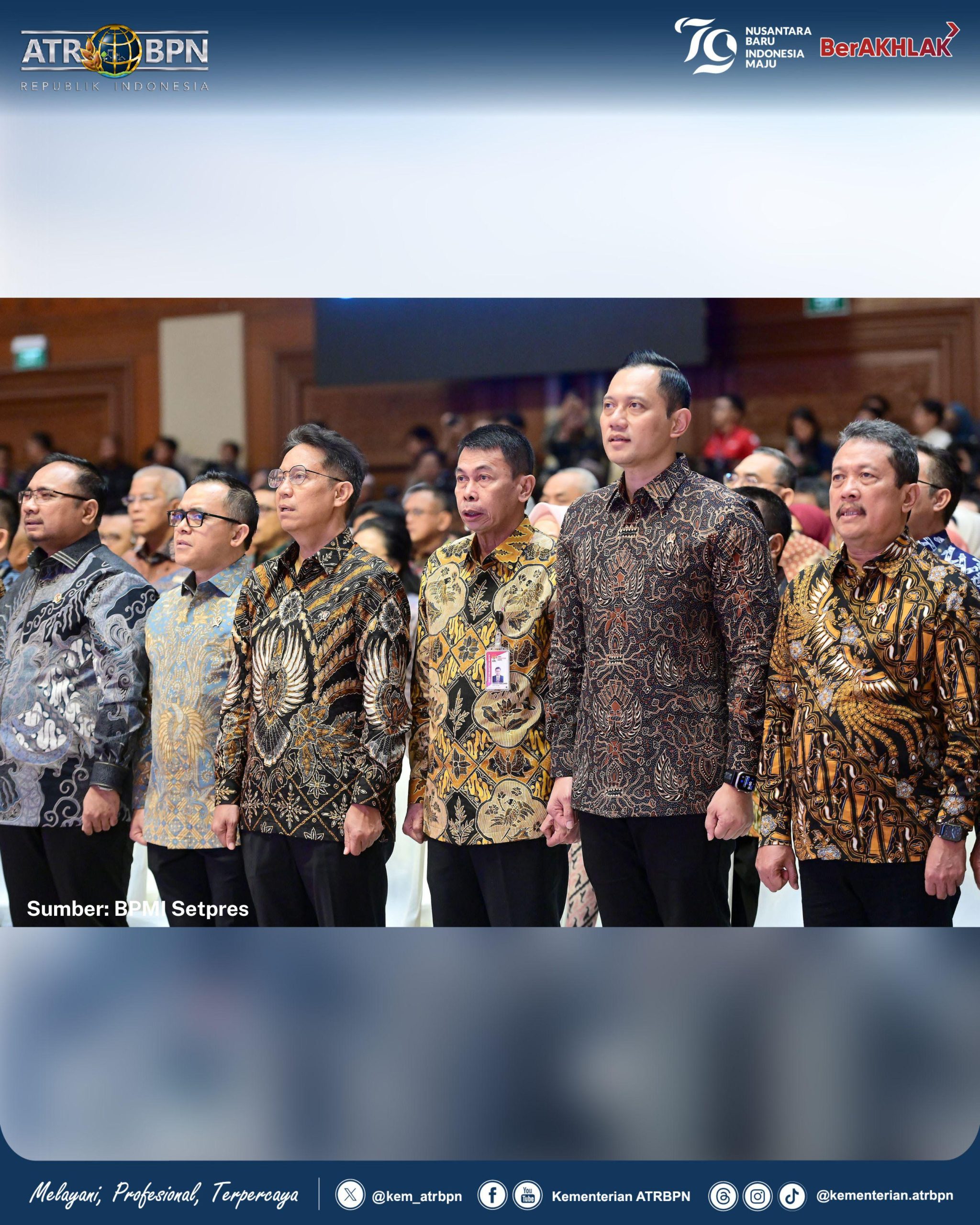 Hadir pada kegiatan ini, Wakil Presiden RI, Ma’ruf Amin; jajaran Menteri dan Kepala Lembaga Kabinet Indonesia Maju; serta Kepala Daerah di tingkat provinsi/kabupaten/kota se-Indonesia. Turut hadir mendampingi Menteri AHY, Wakil Menteri ATR/Wakil Kepala BPN, Raja Juli Antoni; Sekretaris Jenderal Kementerian ATR/BPN, Suyus Windayana; Staf Khusus Bidang Manajemen Internal, Agust Jovan Latuconsina; dan sejumlah Pejabat Pimpinan Tinggi Pratama Kementerian ATR/BPN. (GE/PHAL)